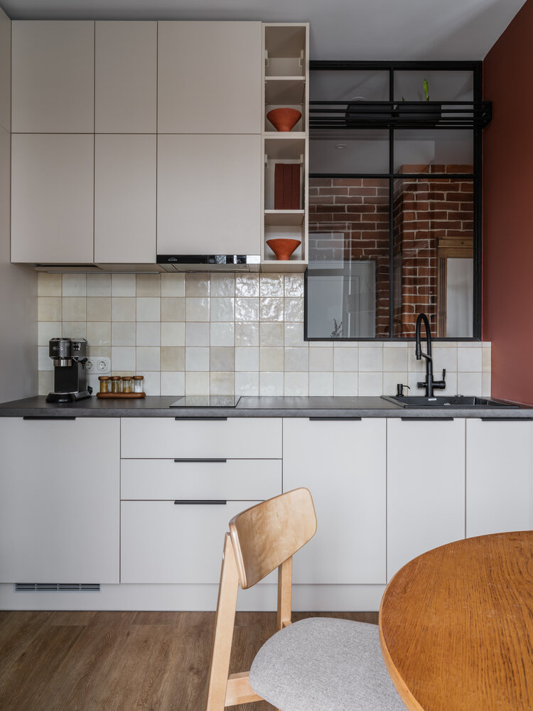 Фотография: Кухня и столовая в стиле Скандинавский, Современный, Минимализм, Эклектика, Малогабаритная квартира, Квартира, Проект дня, Москва, 1 комната, до 40 метров, Павел Баканов – фото на INMYROOM