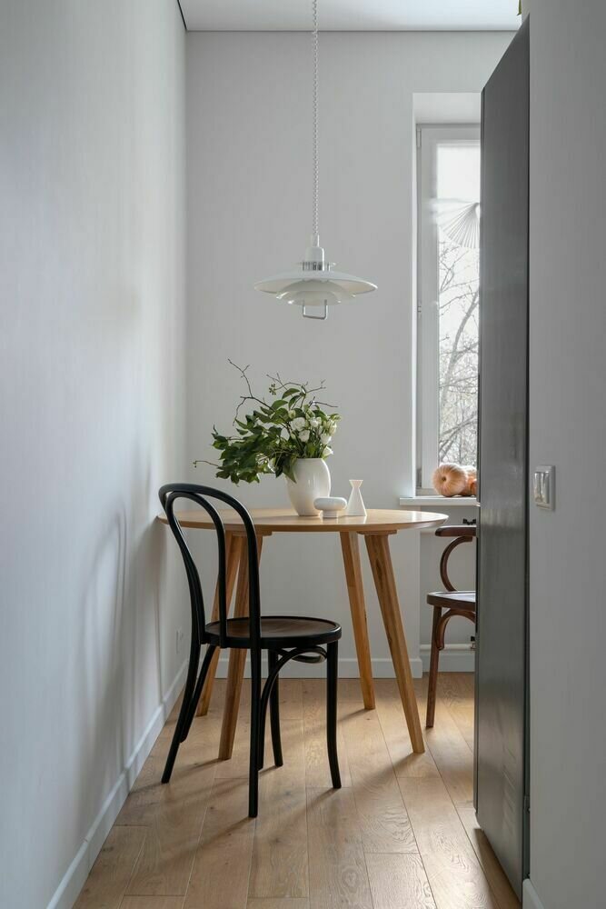 Фотография: Кухня и столовая в стиле Скандинавский, Современный, Минимализм, Квартира, Проект дня, Москва, Сталинка, 2 комнаты, 40-60 метров, Вера Конакова – фото на INMYROOM
